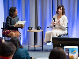 In the opening keynote session, “When Leadership Matters Most—Shaping the Future in Turbulent Times,” Wellesley President Paula A. Johnson and Jean Hynes ’91, CEO and managing partner at Wellington Management, discussed the rapidly shifting global landscape of business, emphasizing its growing globalization and democratization. Hynes drew an analogy between business and education, reflecting that students become the “product” of their education, shaped by their choices and time investments, and those factors can have an impact on their futures.