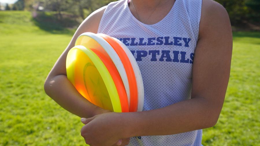 Wellesley’s Ultimate Frisbee team. They have nicknames (Scratch, Toaster, Nala), they sometimes practice in costume (sample: ball gown with sparkly tiara), they lay out in a serious way. Which is a technical term.